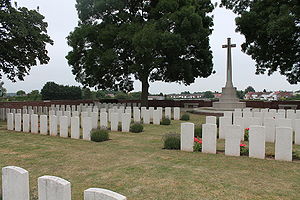 Auberchicourt British Cemetery contains 288 Commonwealth burials and commemorations of the First World War. 19 of the burials are unidentified and special memorials are erected to one soldier from the United Kingdom but there is a special memorial to one casualty known to be buried among them.