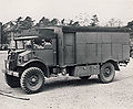 The Lorry 3 Ton Cipher Office was a 60-cwt Canadian Military Pattern (CMP) vehicle manufactured by General Motors. Used by RC Sigs in Div, Corps and Line of Communication (L of C) formation headquarters as a cipher office, it contained two cipher machines and provided desk and seat space for operators and clerks coding and decoding messages. The cipher office vehicle was also equipped with a side penthouse for working outside the vehicle.