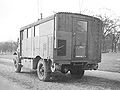 The inside was divided into two compartments, one for staff officers (seats 5) and the other for crew (seats 3). The vehicle could also be used as a Signals Office when the penthouse could be set up.