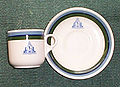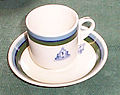 Coffee Cup. An RCCS QC patterned coffee cup. This example was made by Solian Ware. Size: 3" W x 2 7/8" H.
