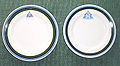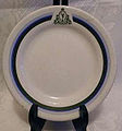 This plate is not the usually seen pattern and has some key differences, notably, the crest breaks the coloured rings and the rings are not on the perimeter of the plate. Size: 7" Diameter