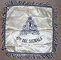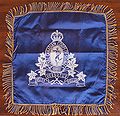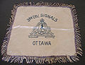 3 Div Signals Cushion Cover. A white with blue crest and accents bearing the words "3rd Div Signals Ottawa" and the King's Crown RCCS crest.