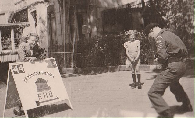 An unidentified signaller of 2nd Corps Signals. Oddly, the soldier is wearing shoulder titles for the 18th Armoured Car Regiment (12th Manitoba Dragoons) (a unit attached directly to II Canadian Corps whom he was likely supporting) in addition to the normal Corps patch with RCCS superimposed on it.