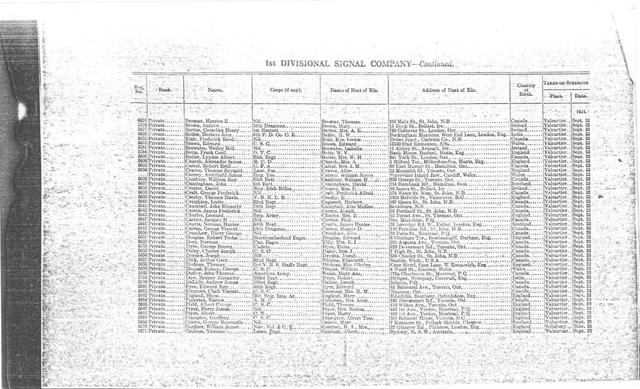 Embarkation role for 1st Canadian Divisional Signal Company as published in Militia Orders.