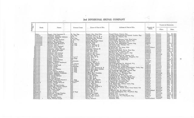 Embarkation role for 2nd Canadian Divisional Signal Company as published in Militia Orders.