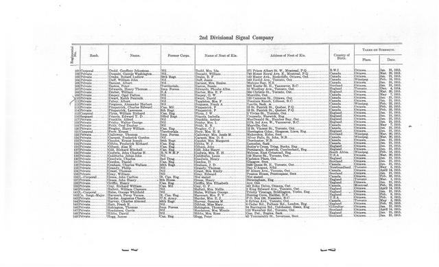 Embarkation role for 2nd Canadian Divisional Signal Company as published in Militia Orders.