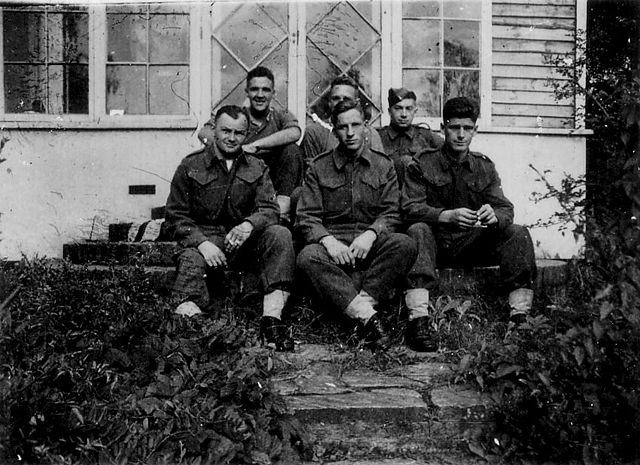A photo of soldiers from 3 Special Wireless Section taken at Leatherhead UK. The fellow who is front and centre on the steps is Signalman Harold Smith who would be killed not long after this photo was taken during a pre-invasion training exercise.