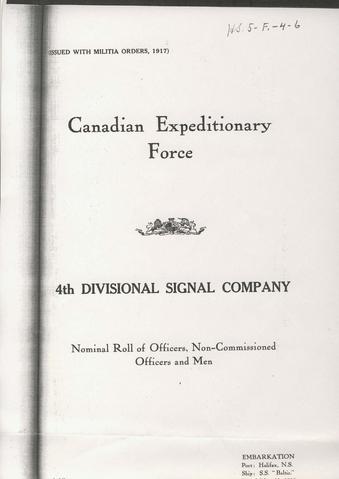 Embarkation role for 4th Canadian Divisional Signal Company as published in Militia Orders.