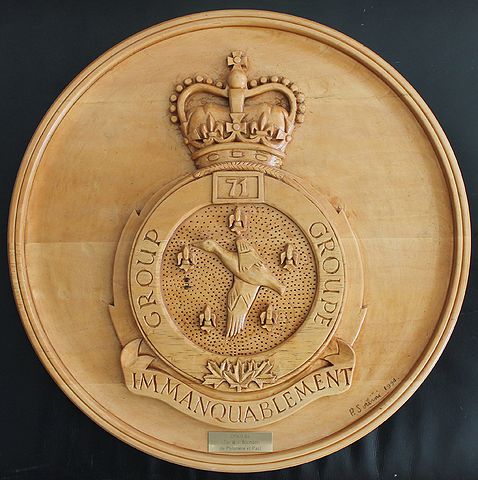 A carved crest for 71 Communication Group. Crest was presented to LCol Bill Blondon at the end of his tenure as Group Commander in 1994. The crest measures 18" in diameter and was carved by Paul Sorbini who was a carpenter at 202 Workshop Depot and the husband of Philomene Sorbini, the long time Leased Facilities Manager at 71 Communication Group.