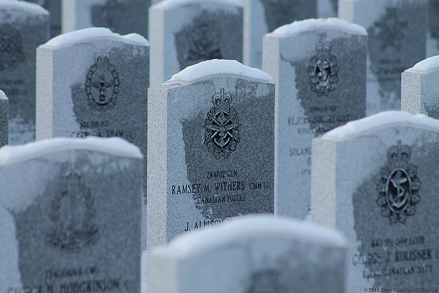 Photograph of headstones, including General Ramsey Withers taken on 10 January 2015 on the day of his celebration of life and internment at the The National Military Cemetery of the Canadian Forces.