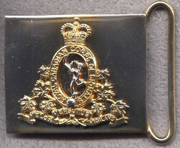 This version of this style belt buckle features an anodized cap badge with a large crown and vertical screw post fasteners.