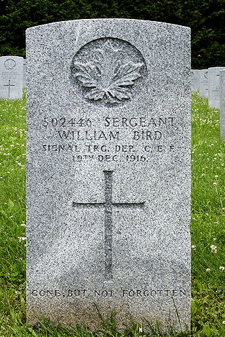 Grave marker for Bird, William in Cataraqui Cemetery, Kingston.