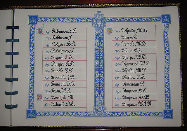 Photos of the Royal Canadian Corps of Signals Book of Remembrance