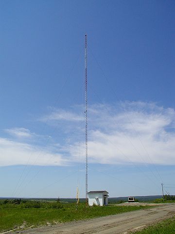 A photograph of the radio tower at Petersville. This facility replaced the RRB service provided from Knowlton Hill in 1973.