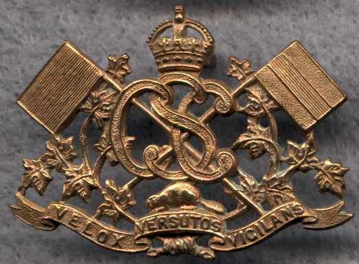 Brass other ranks' small pattern cap badge, also used as a collar badge. A second variety was manufactured from copper. Note the spelling error on the word "VERSUTOS" which should correctly read as "VERSUTUS".