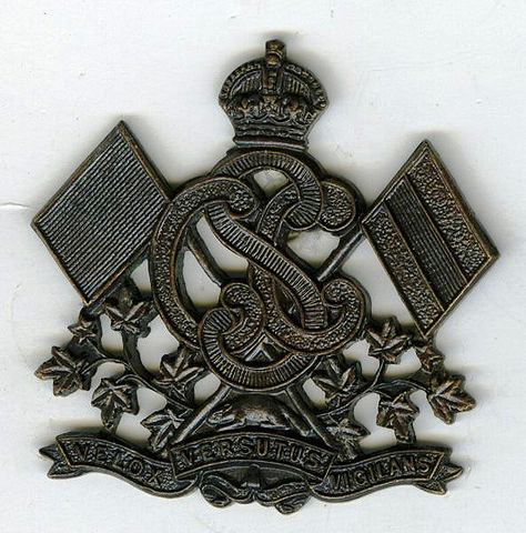 An odd sized CSC badge. Pattern is the large cap badge (1908-1921) however the normal size is about 41 mm W x 43 mm H. This one is 34mm wide by 33.50mm height, lugs (horizontal), smooth back, browning copper, no makers mark.