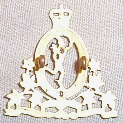 RCCS QC Officers' gilt & silver cap badge with small sized crown (9 mm W x 8 mm H). Lug type fasteners.