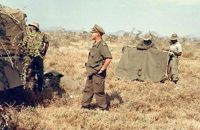 Capt Doug Yerxa inspecting camouflage, Tanzania.