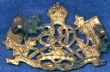 CC of S other ranks' brass collar badge with thick flat lettering to the CCS monogram. Also note that the maple leaves touch the flags near the top, whereas on other variations they are separated from the flags.
