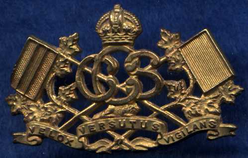 CC of S other ranks' brass collar badge with thick flat lettering to the CCS monogram. Also note that the maple leaves touch the flags near the top, whereas on other variations they are separated from the flags.