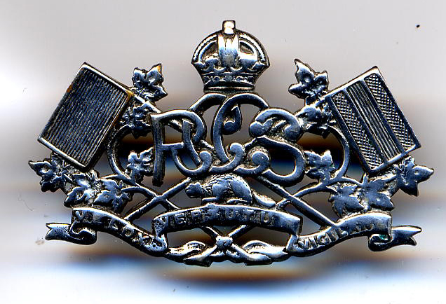 This is a King's crown RCCS collar badge. The metal of this badge is strangely silver. There were anodized badges but unlike all those I've seen, this one shows significant signs of polishing. The question is, what metal is this badge made from? Is it a different metal or did someone anodize an old and polished badge?