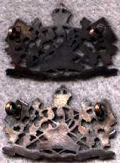 RCCS KC officers' service dress collar badge with voided crown. Note that this pattern is also smaller in both width and height. Fasteners are lug type. This is a less common variation which is not often seen on the collector's market.