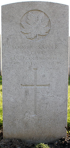 Grave marker for Coop, Leonard in Lijssenthoek Military Cemetery.