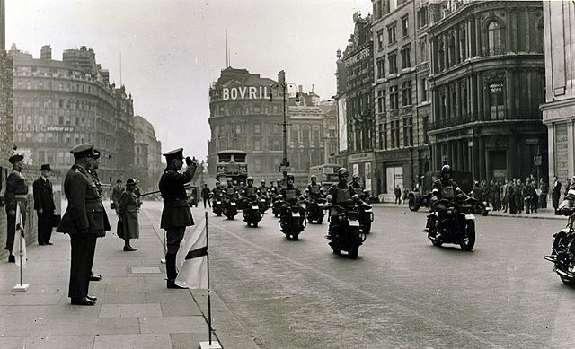 A photo of a Despatch Rider roll past in London, England, 1940. The unit has not yet been identified.