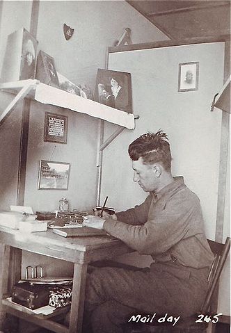 Aubrey Griswold in barrack room at Fort Smith c1925