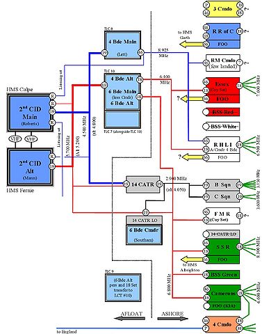 A diagram showing the actual communication nets and equipment for the Dieppe Raid.