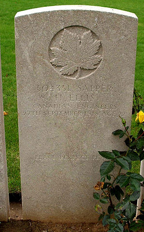Grave marker for Ellis, Herbert in Quarry Wood Cemetery, Sains-Les-Marquion.