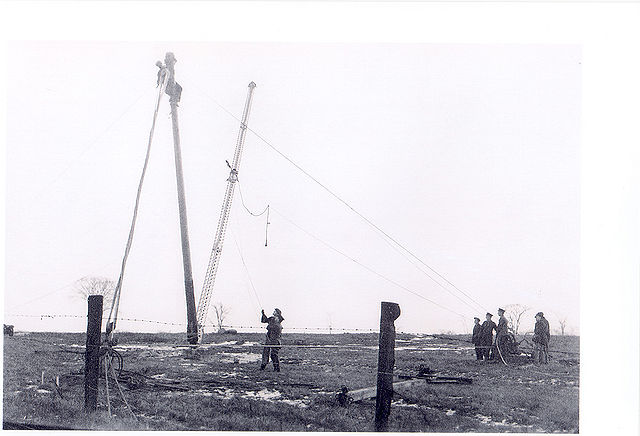 Erection of wireless mast by R.C.C.S. personnel. Date and place are unknown.
