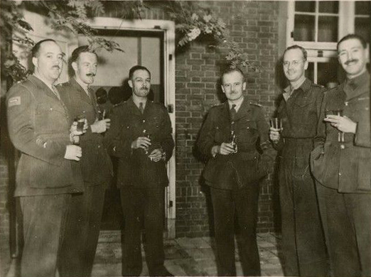 Shown in the photograph are (left to right): LtCol Leach, Maj Wilson (believed to be Maj W.H.T. Wilson), Maj Brennaman, LtCol Wishart, Maj MacLoud, LtCol Grover