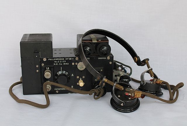 A photo of a Fullerphone Mk IV* (Canadian). Unit with headphones.