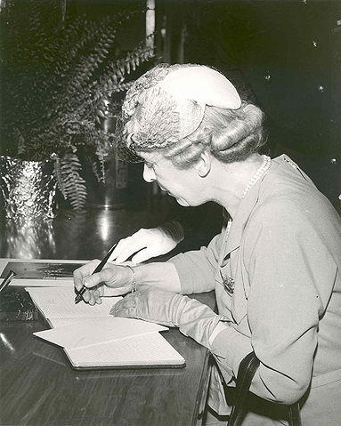 Her Royal Highness, Mary, The Princess Royal signs the Guest Book in the foyer of the Cartier Street Armory.