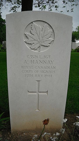 Grave marker for Hannay, Alexander in Beny-sur-Mer Canadian War Cemetery.