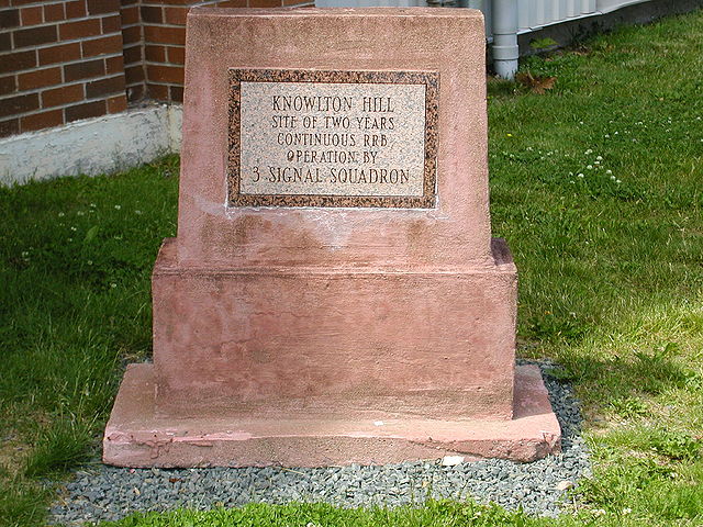 A photograph of the Knowlton Hill monument at Building D5, CFB Gagetown, the home of 3 Area Support Group Signal Squadron.