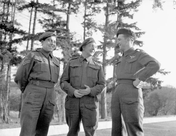 Personnel at No.1 Canadian Non-Effective Transit Depot (Canadian Army Miscellaneous Units) preparing for thirty-day rotation leave in Canada. England, 29 November 1944 Date(s): November 29, 1944 , Place of publication: England Extent 1 photograph ; 4 x 5 in. Scope and content (L-R): Corporal D.P. Passien, Royal Canadian Corps of Signals (R.C.C.S.); Staff Quartermaster-Sergeant J. High, Royal Canadian Army Service Corps (R.C.A.S.C.); Sergeant Elmer R. Bonter, Canadian Army Film and Photo Unit Conditions of Access Graphic (photo) (Copy negative) PA-142263 90: Open Nil Terms of use Credit: Lieut. Charles H. Richer. / Canada. Dept. of National Defence / Library and Archives Canada / PA-142263 Restrictions on use: Nil Copyright: Expired Additional name(s) Photographer Richer, Charles H Reference Numbers Copy negative: PA-142263 Item no. (creator): 43083 Other accession no.: 1967-052 NPC Additional Information Series added entry Army Subject heading Mil. - Personnel - General - 1944/11/29 Passien D.P High J Bonter E.R Language of material no language Source. Government Other system control no.: DAPDCAP2566 MIKAN No. 3201057