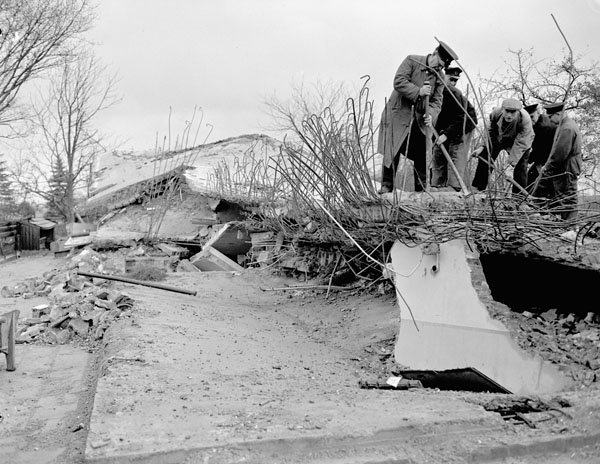 Personnel of the Royal Canadian Corps of Signals, 1st Canadian Army, at the old telephone exchange building, which was destroyed by the Germans, Roosendaal, Netherlands, 21 November 1944 Date(s): November 21, 1944 , Place of publication: Roosendaal, Netherlands, Extent 1 photograph ; 96 x 125 mm Conditions of Access Graphic (photo) (Copy negative) PA-143893 90: Open Nil Terms of use Credit: Capt. Ken Bell / Canada. Dept. of National Defence / Library and Archives Canada / PA-143893 Restrictions on use: Nil Copyright: Expired Additional name(s) Photographer Bell, Ken Photographer Bell, Ken, 1914- Reference Numbers Copy negative: PA-143893 Item no. (creator): 42757 Other accession no.: 1967-052 NPC Additional Information Subject heading Mil. - Units - Army - Royal Canadian Corps of Signals - 1944/11/21 Netherlands - Breda - General Services - Communication - Telephones Army Language of material no language Source. Government Other system control no.: DAPDCAP4393 MIKAN No. 3202818
