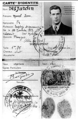 False ID card made for Raymond LaBrosse under the name Marcel Desjardin, salesman. The card was essential to cross Gestapo and French police checks in occupied France.