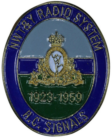 Lapel pin for the Northwest Territories and Yukon Radio System which was in operation from 1923 to 1959.