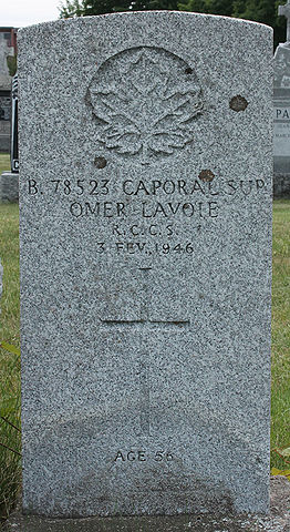 Grave marker for Lavoie, Omer in Notre Dame Cemetery, Gatineau.