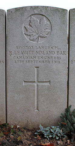Grave marker for Leavitt, Ralph in Sains-Les-Marquion British Cemetery.