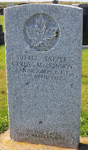 Grave marker for MacKinnon, Cyrus in Fredericton Cemetery.