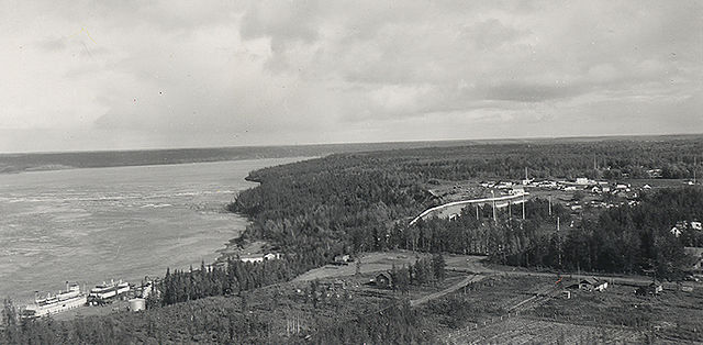 Fort Smith 1940 photo of the town and harbour from a 150 foot antenna tower.