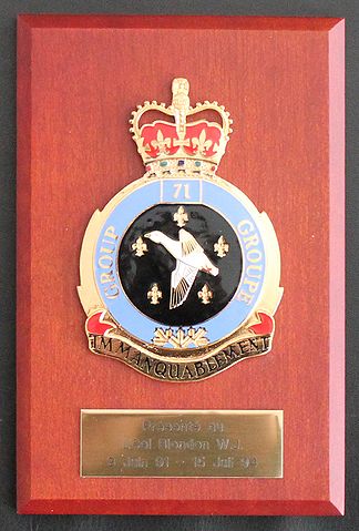 A plaque for 71 Communication Group. This example was presented to LCol Bill Blondon at the end of his tenure as Group Commander in 1994.