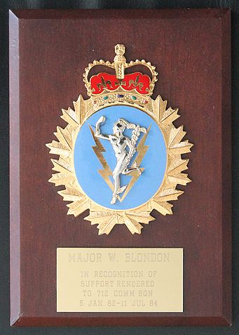 A plaque for Communications and Electronics Branch. This example was presented to Major Bill Blondon by 712 Communication Squadron in 1984.