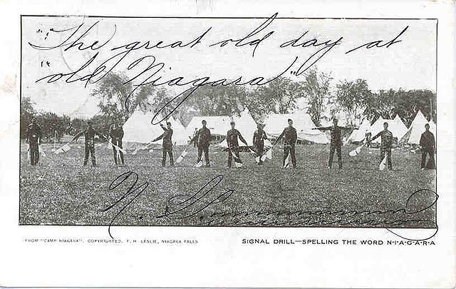 Photo postcard titled "Signal drill - spelling the word NIAGARA". Postmarked 190(9?).