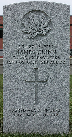 Grave marker for Quinn, James in Notre Dame Cemetery, Ottawa.