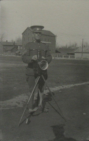 Sergeant L. Reading with Begbie signalling lamp, Kingston Ontario, February 1917.